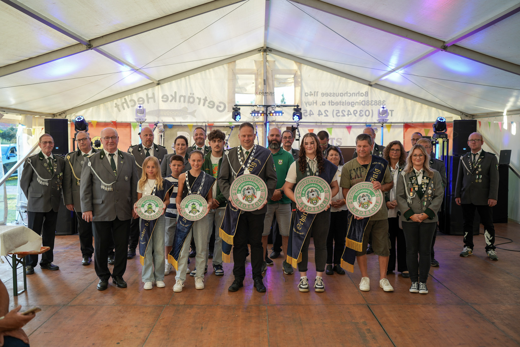 Los ging es am Freitag mit dem festlichen Umzug zur Abholung der Majestäten des Vorjahres – begleitet von vielen Krottorfer:innen, bunten Uniformen und den Beats von DJ Sven aus Hordorf.